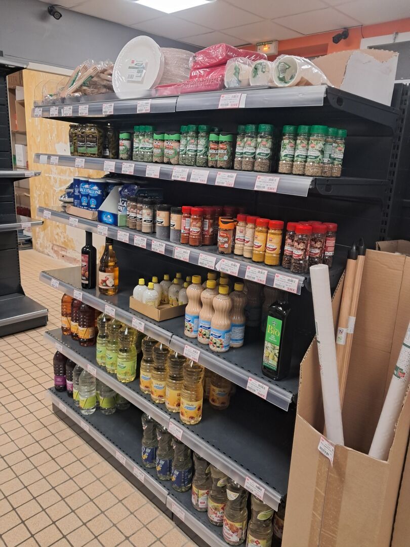 Stock dont produits alimentaires, Agencement, Vitrines et armoires réfrigérées (dont DAP, BONNET NEVE, DOCRILUC...), Auto-laveuse FIMAP, Trancheur à jambon SWEDLINGHAUS 2020, Gerbeur manuel 2021, Vins, Bières et Alcool...