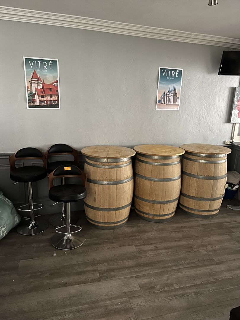 MOBILIER de 23 Chambres d’hôtel, Tables, Chaises, Meuble bar, Tonneaux, Lave-linge DAEWOO, Sèche-linge ARTHUR MARTIN…
