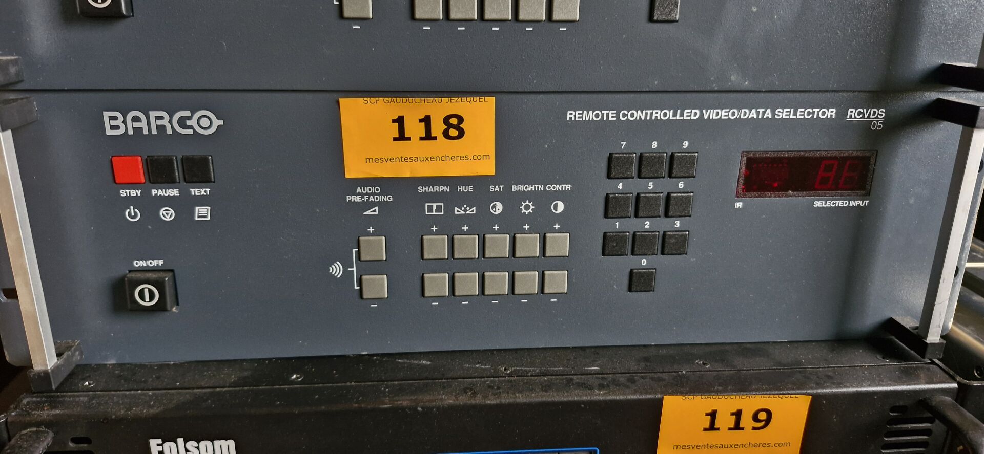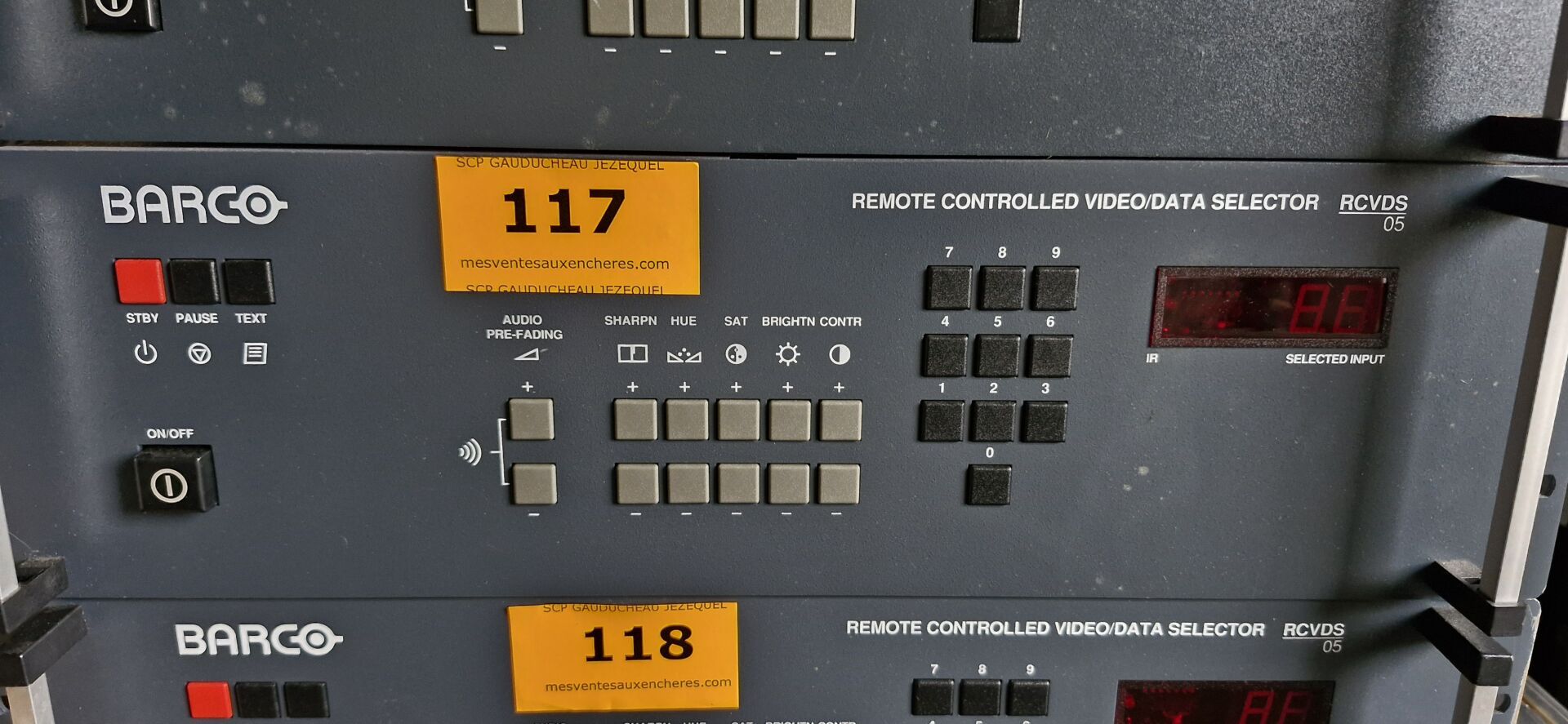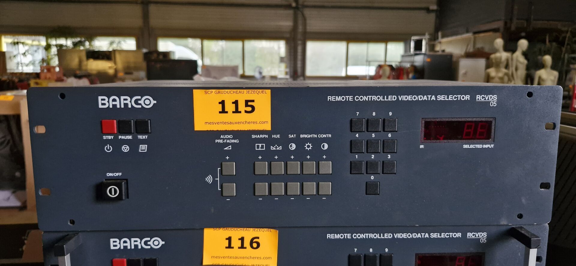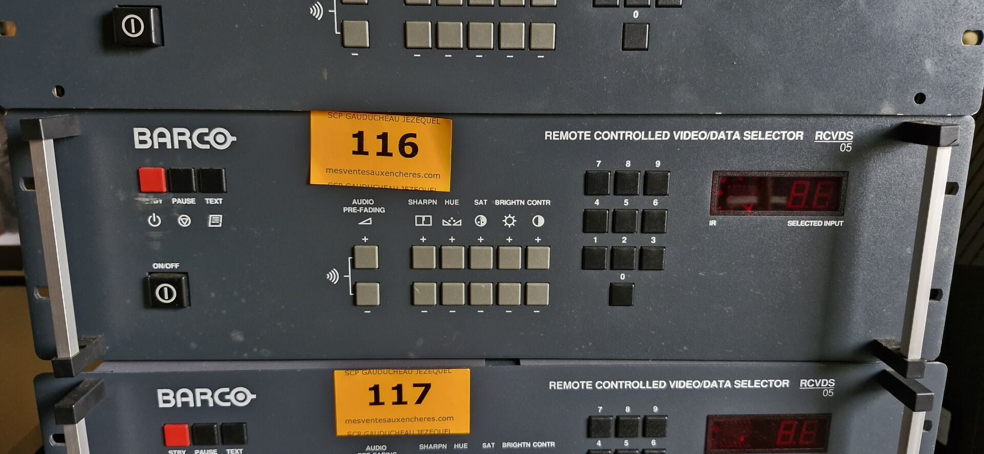 Enceintes (GENEVA, LOEWE, FERGUSON HILL, TANNOY, AKG), Ecrans (BANG et OLUFSEN, FUJITSU), Rétro projecteurs et lentilles BARCO, Loupes à haute pression, Ecrans AEG NEOVO, Unités de contrôle BARCO, Câbles...