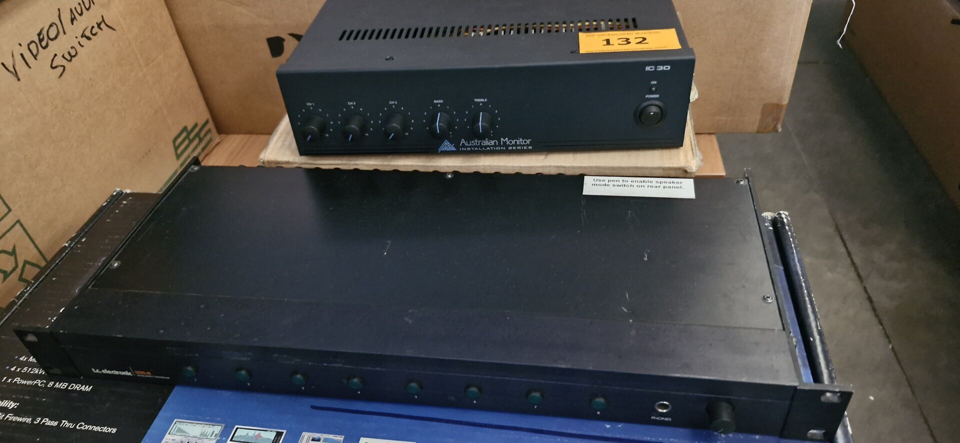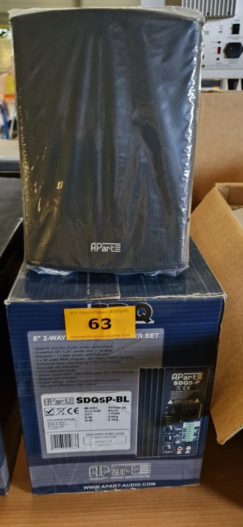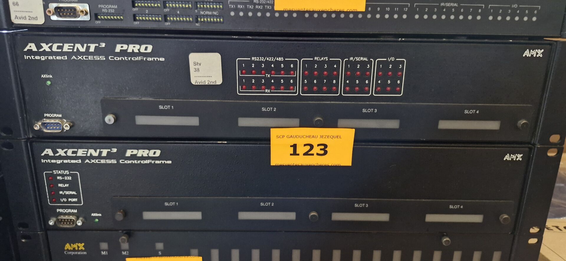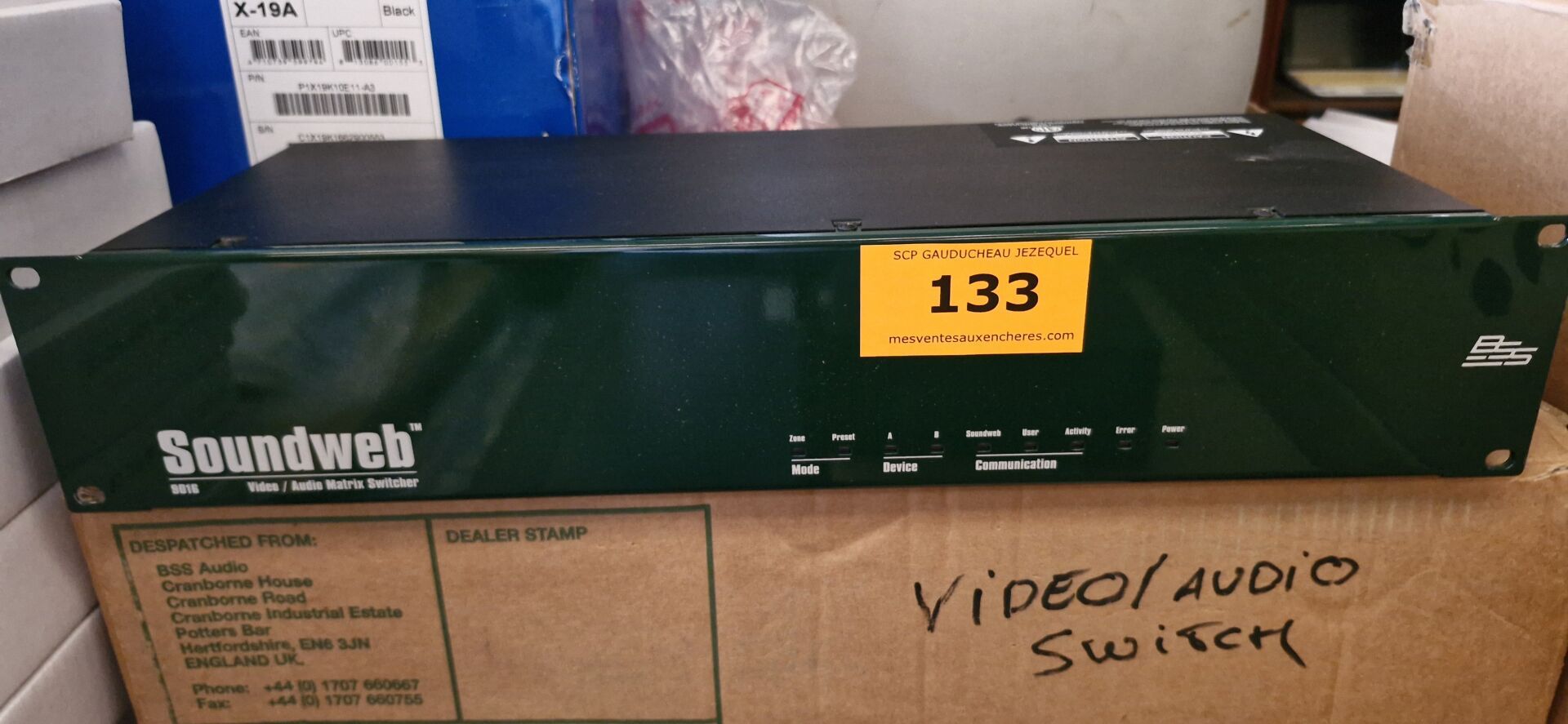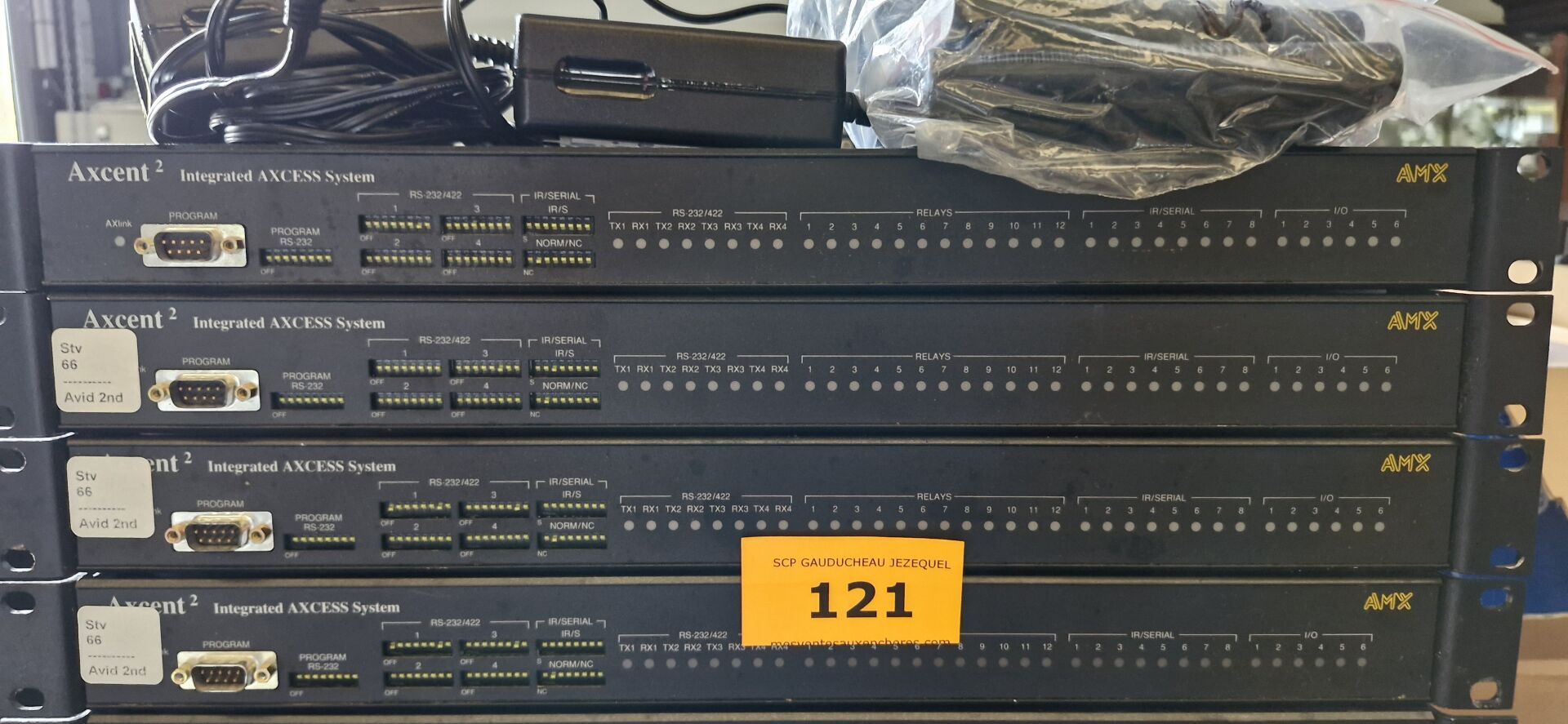 Enceintes (GENEVA, LOEWE, FERGUSON HILL, TANNOY, AKG), Ecrans (BANG et OLUFSEN, FUJITSU), Rétro projecteurs et lentilles BARCO, Loupes à haute pression, Ecrans AEG NEOVO, Unités de contrôle BARCO, Câbles...