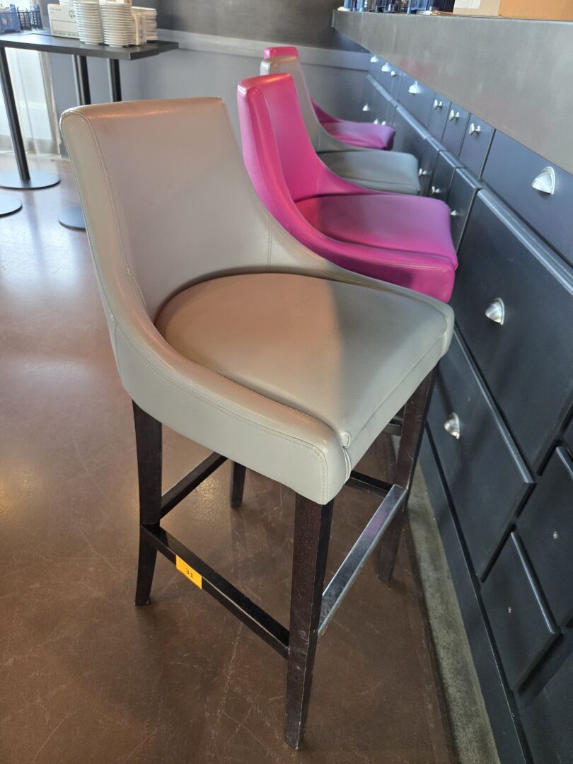 4 Tabourets de bar similicuir dont 2 gris et 2 fuchsia.