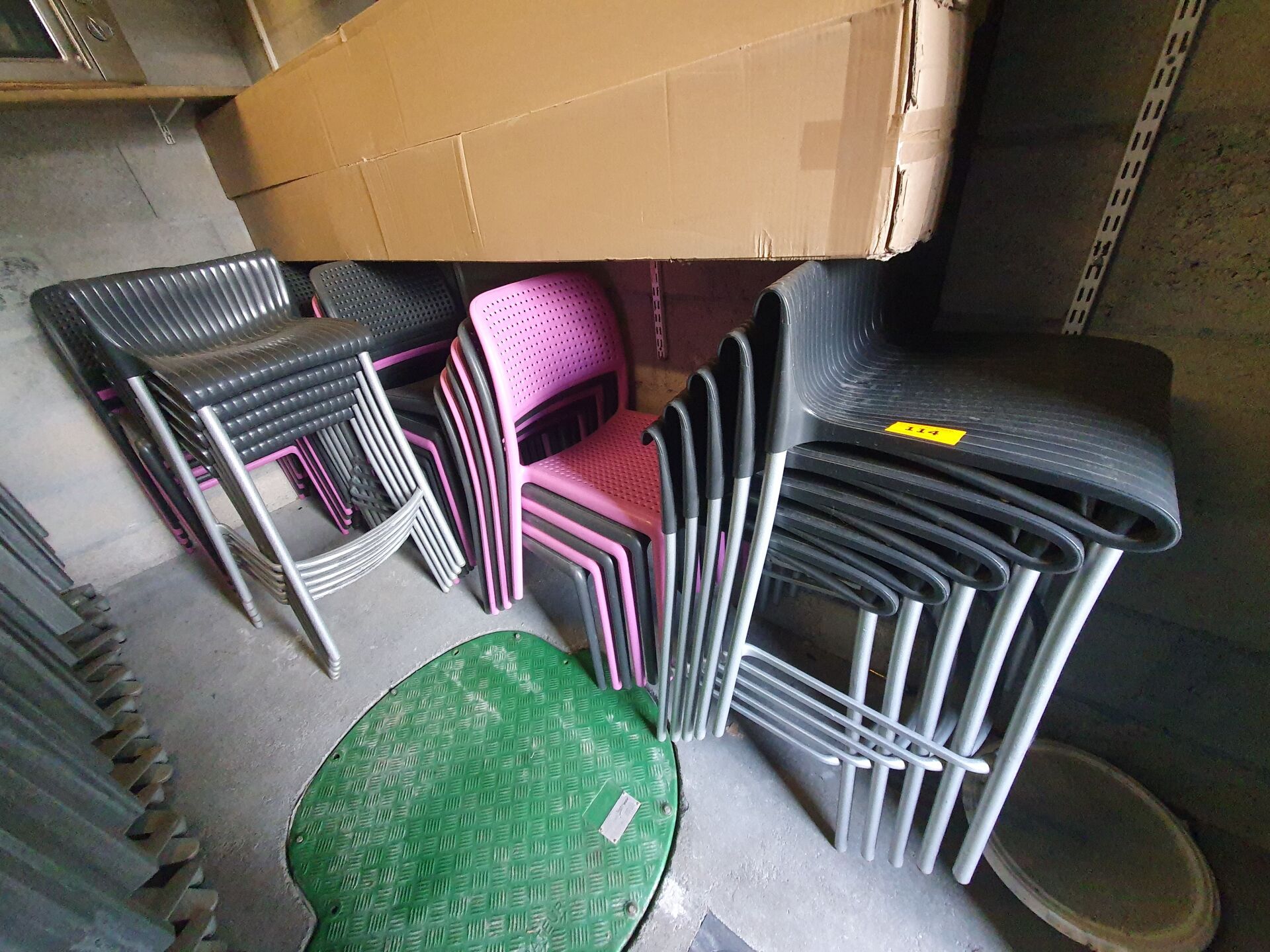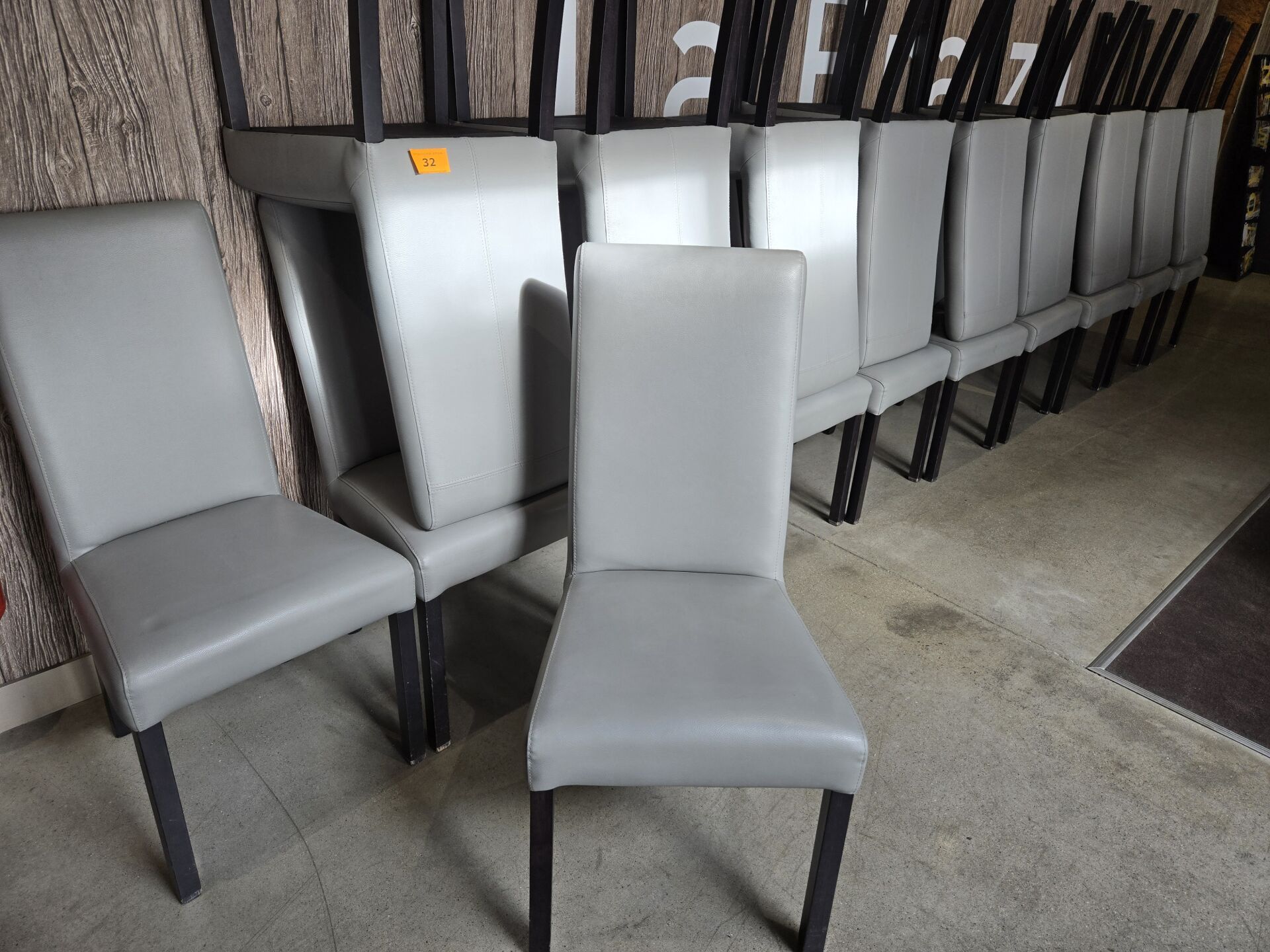 Environ 60 chaises en similicuir gris.