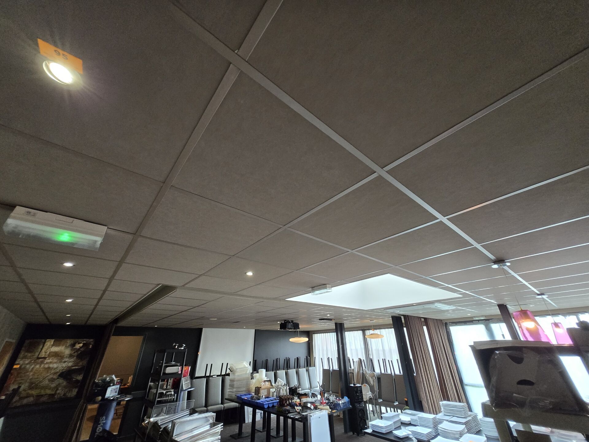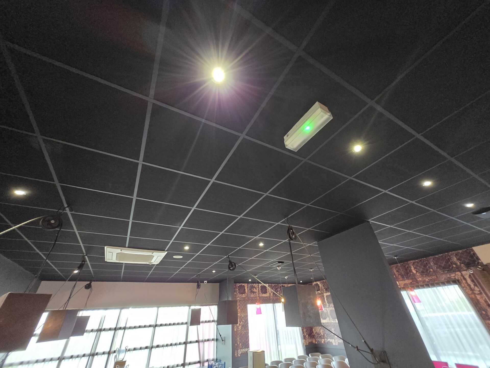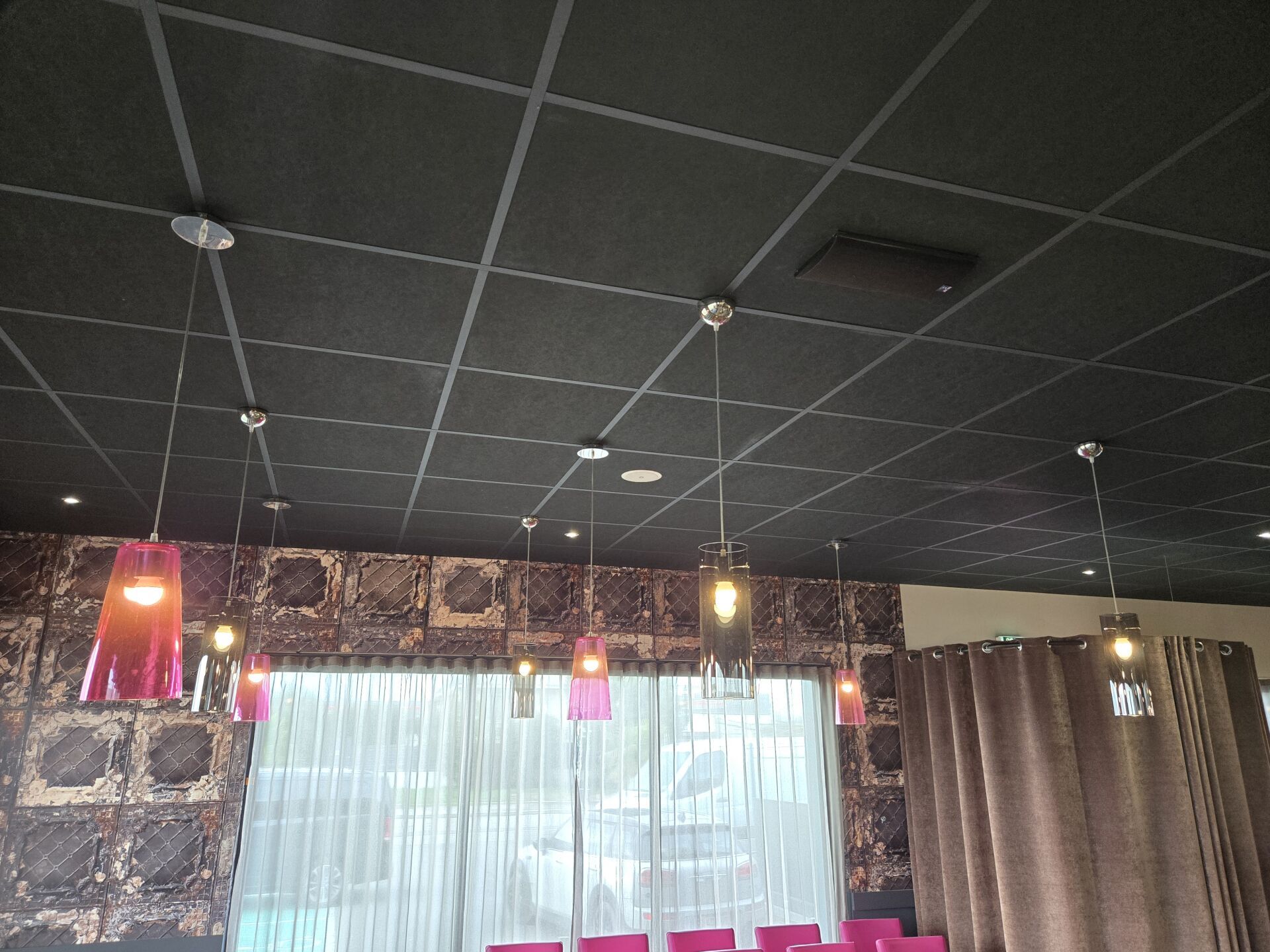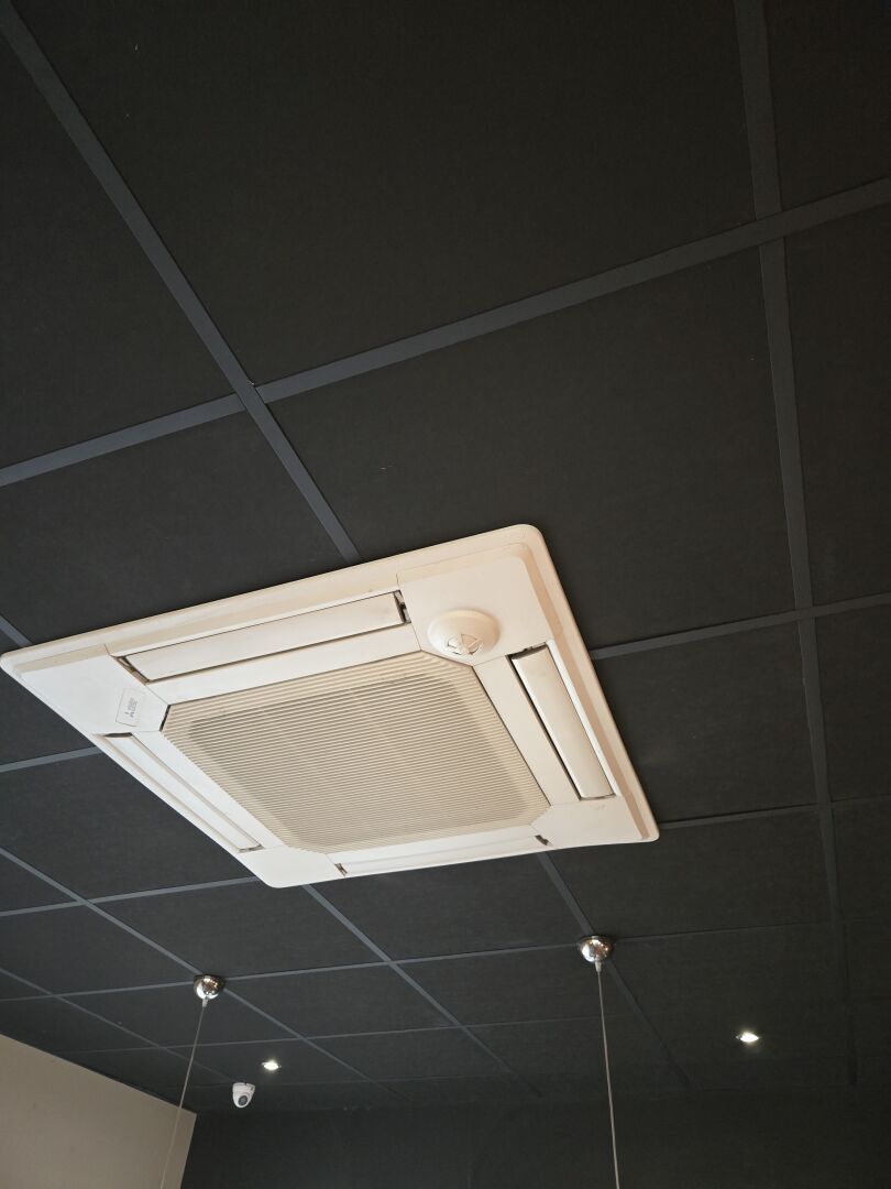Faux plafond noir (8.90 x 12.90), dalles et traverses avec isolation IBR/laine de verre 200