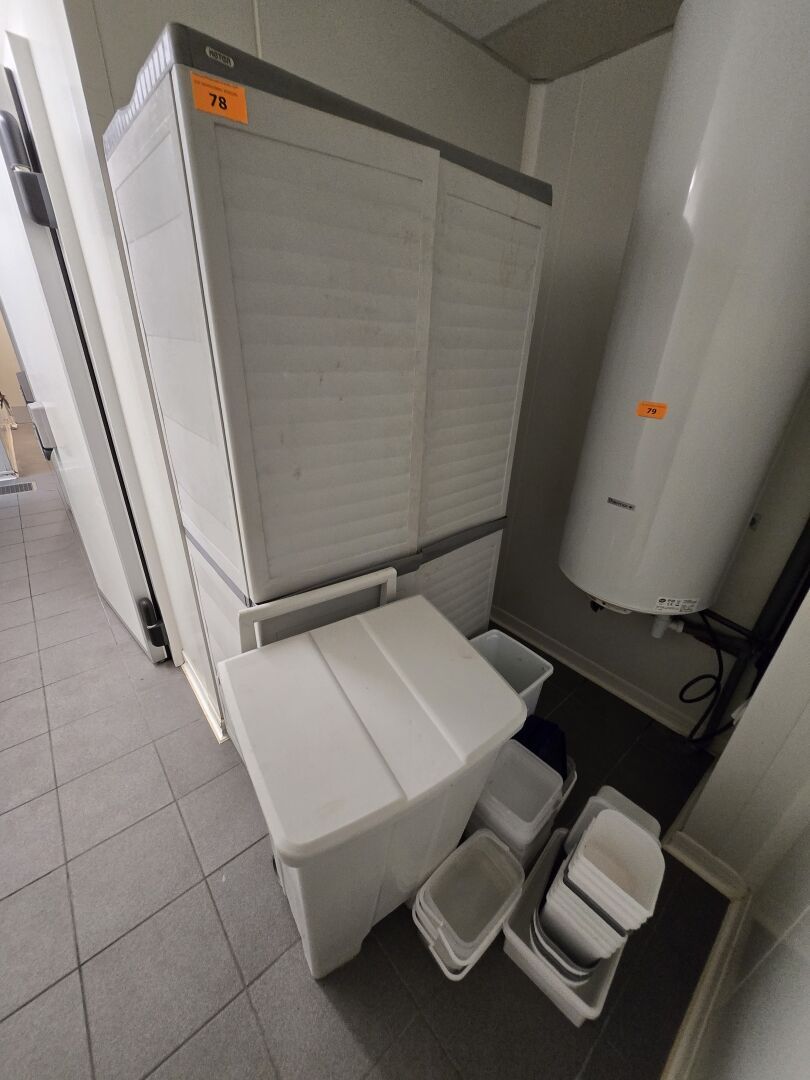 Ensemble de bacs plastiques avec couvercles et pots en verre