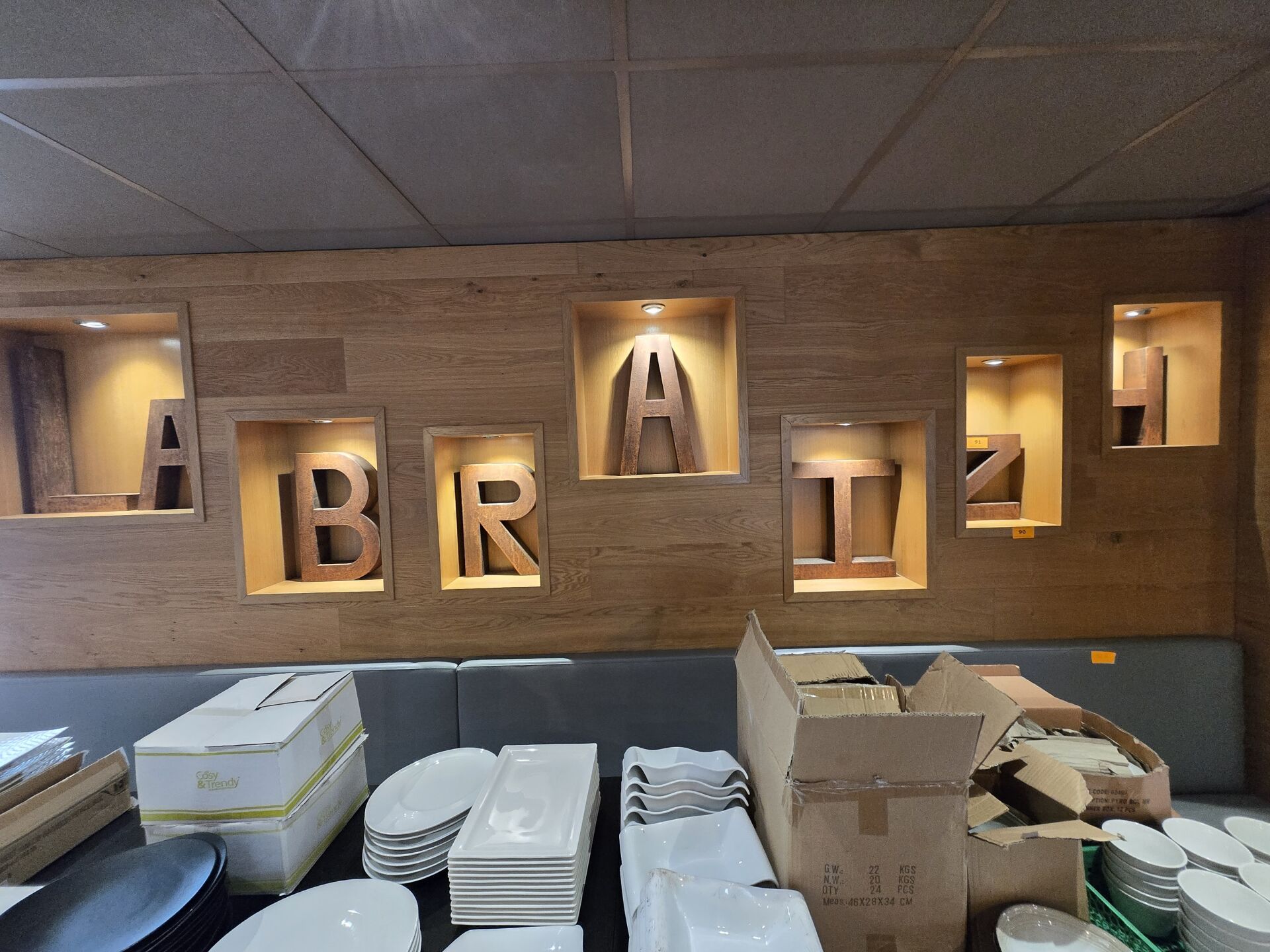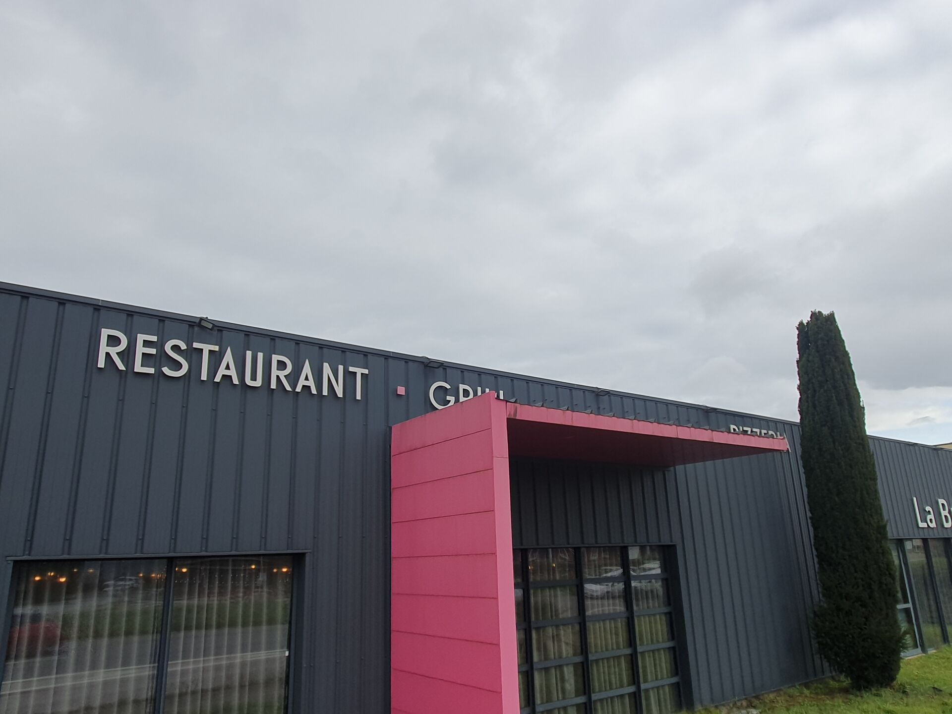 Lettrage "RESTAURANT GRILL AU FEU DE BOIS PIZZERIA"