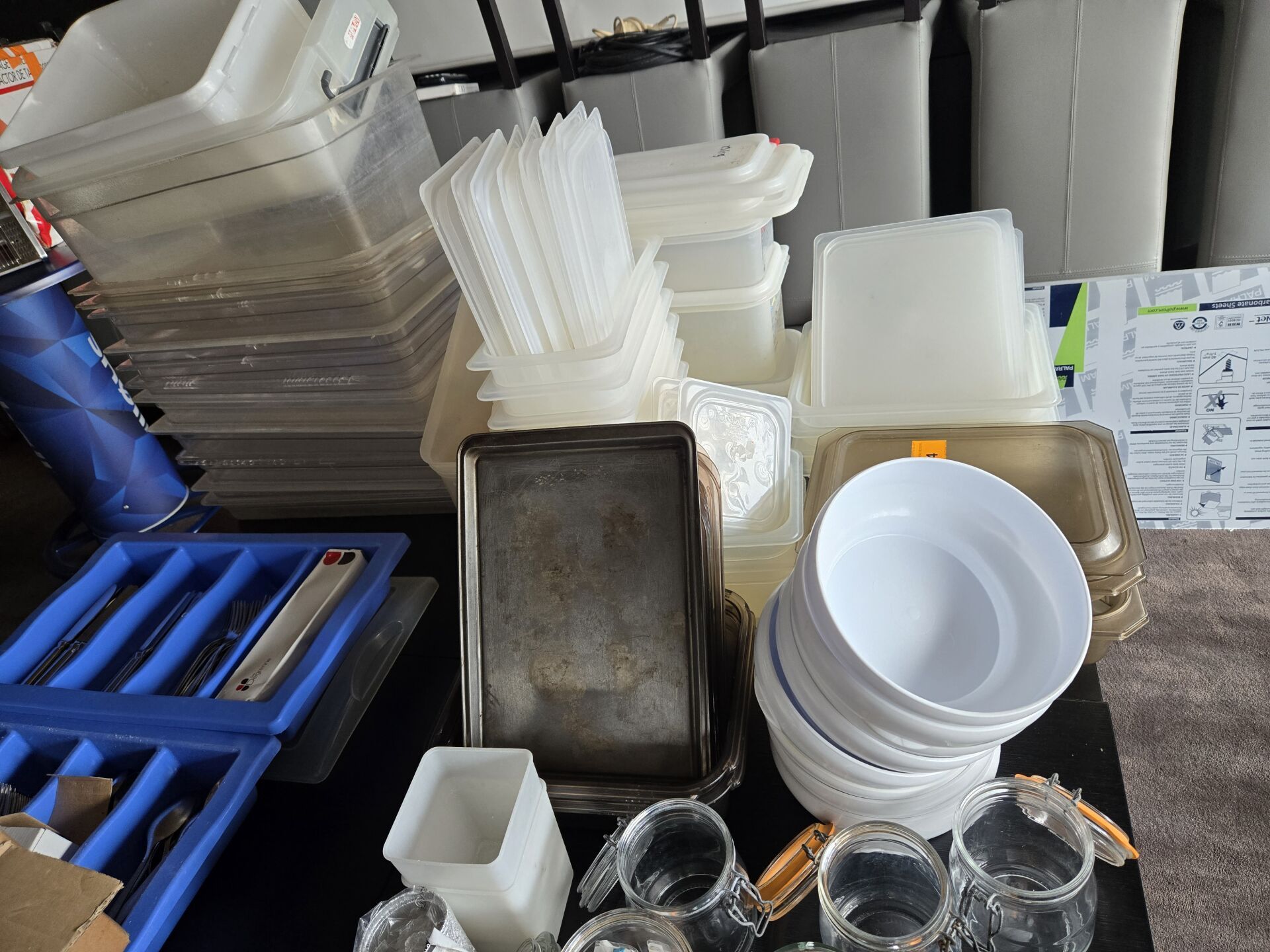 Environ 54 bacs gastro avec environ 42 couvercles et 3 culs de poule