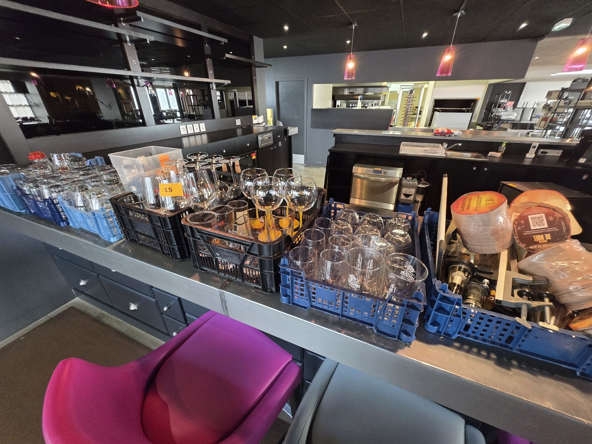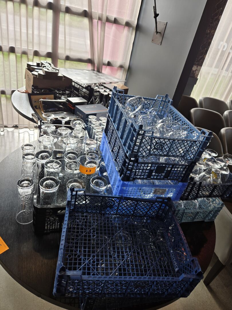 Environ 191 verres à bière, à champagne et à soft