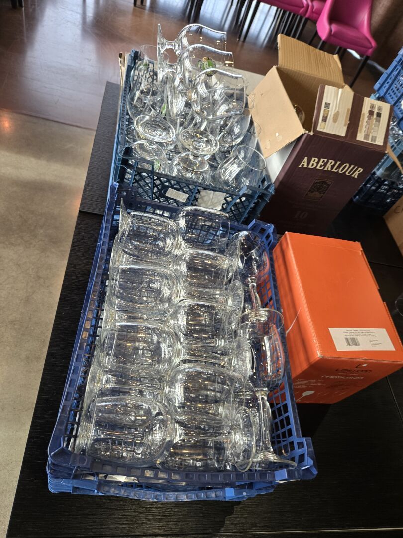 Environ 279 verres à pied et à eau