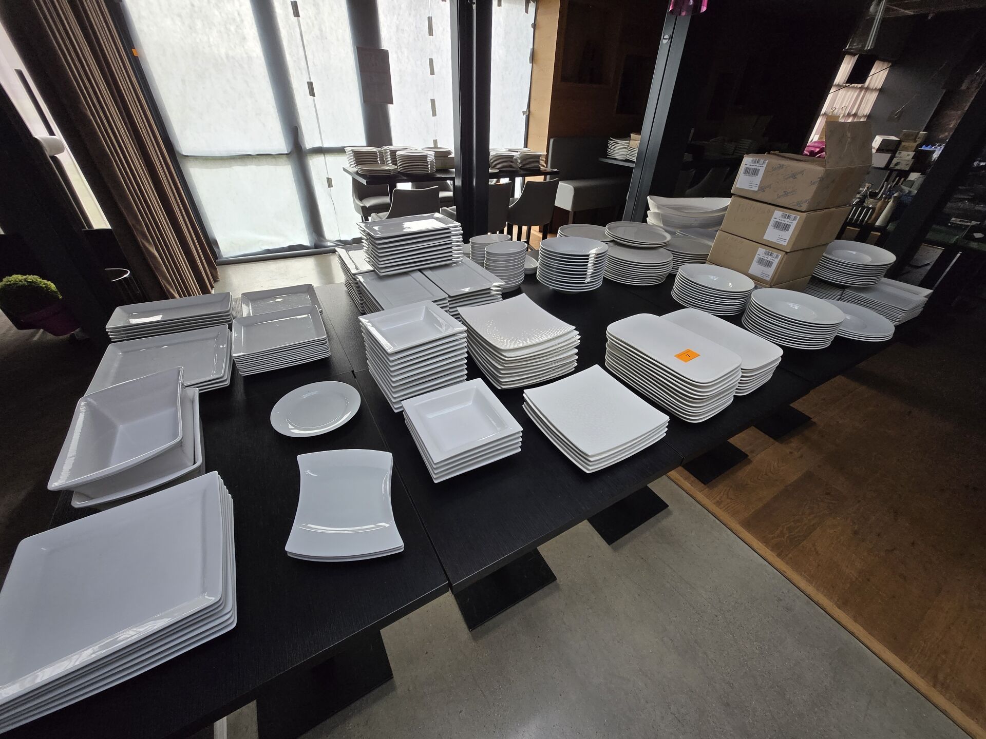 Environ 209 assiettes (rondes, carrées et rectangles), ramequins et petits bols