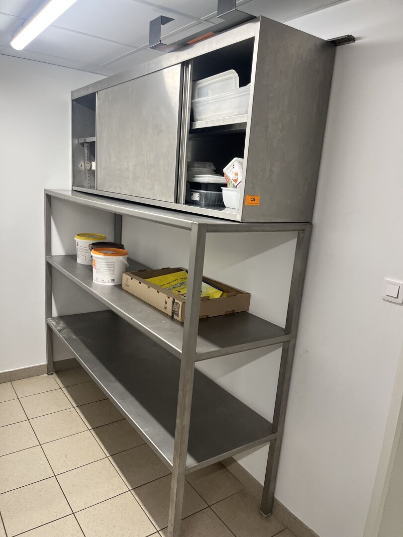 Buffet mural neutre, bâti inox et son contenu (emballage),