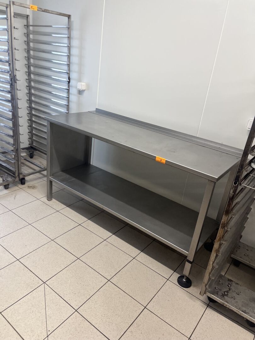 Table inox avec dosseret et tablette d'entrejambe,