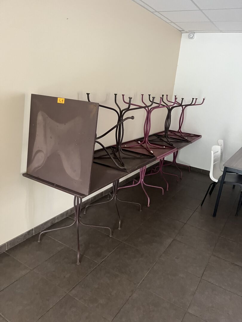 6 Tables à plateaux stratifiés façon bois + 1 Table forme trapèze,