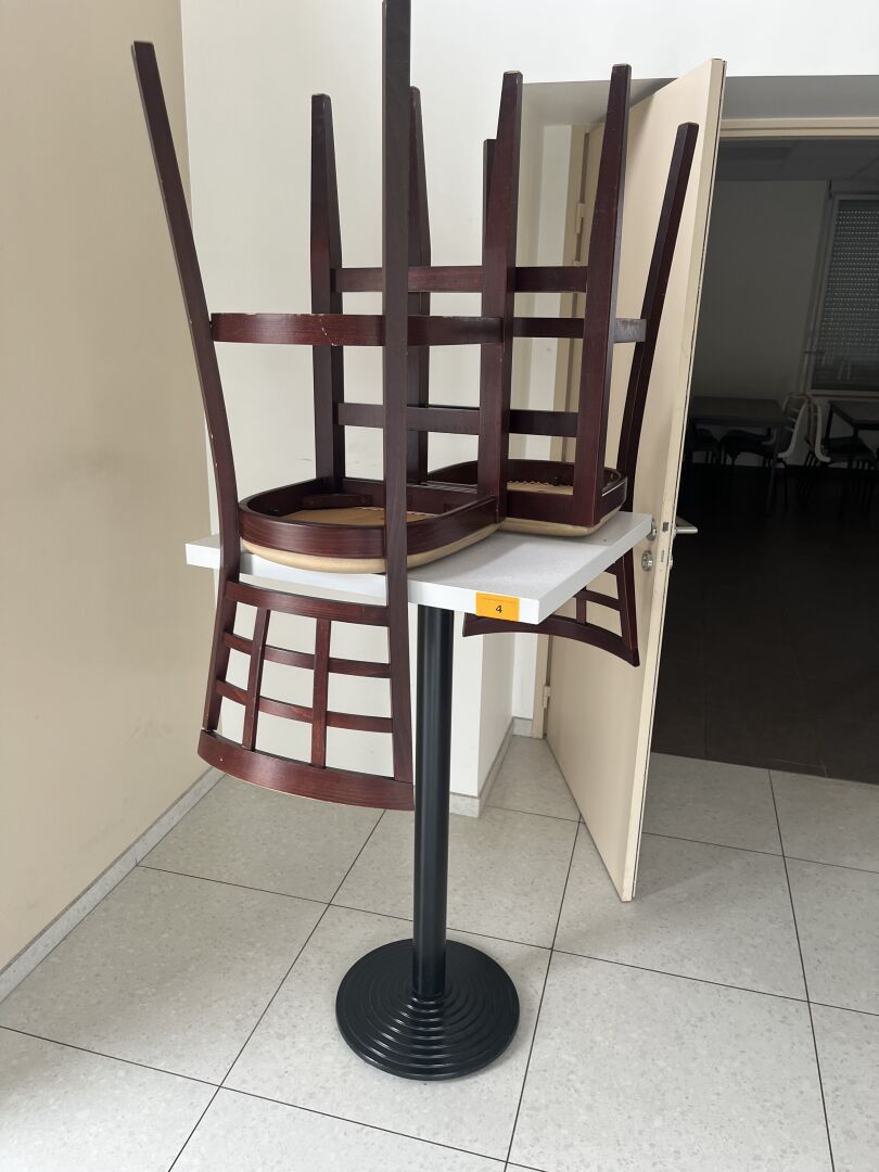 2 Tables mange-debout, 4 Chaises hautes,
